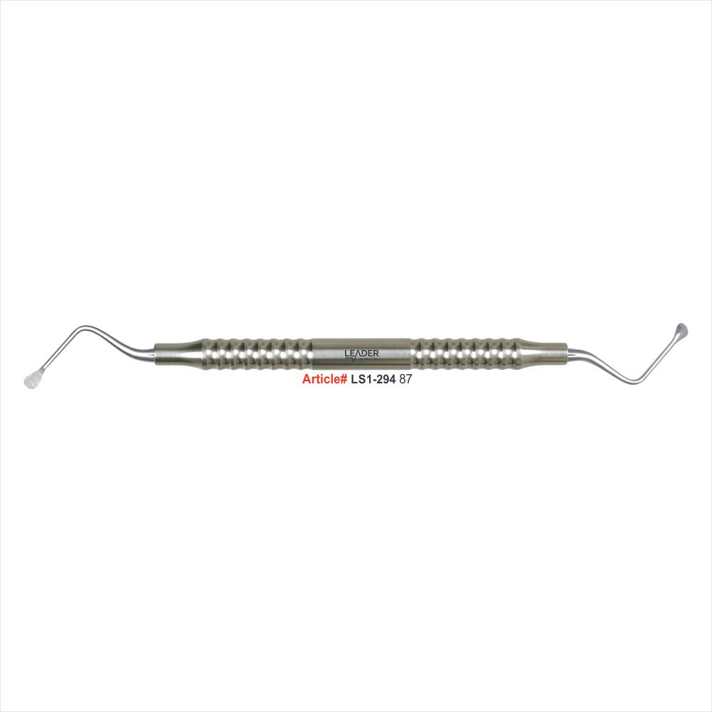 The standard Lucas 87 is a double-ended instrument with mirror-image spoon tips to allow clinicians to easily switch working sides during a procedure.