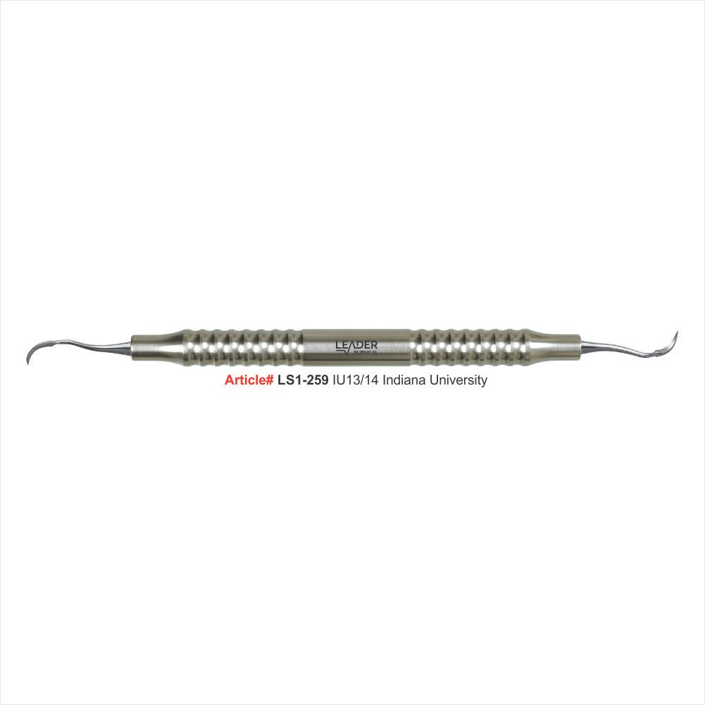 Dental hygienists and periodontists use the double-ended dental scaler IU13/14 during subgingival scaling, light-to-moderate calculus removal, and full-mouth debridement on both anterior and posterior teeth. Both working ends adapt to all four root surfaces of each tooth without instrument changes mid-sextant. Dental Scalers & Curettes of this IU13/14 pattern are also standard in dental hygiene school programs for teaching universal curette adaptation and stroke activation on typodont models.
