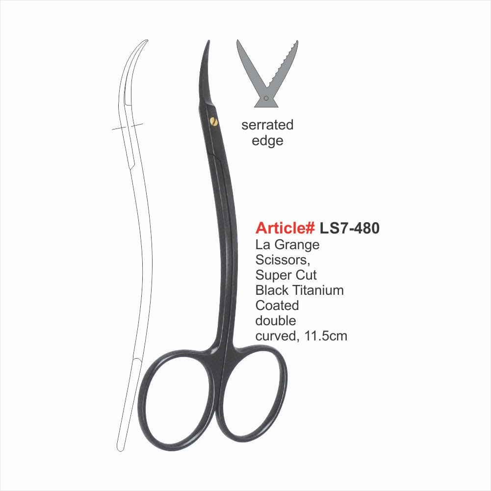 La Grange Sciesors, Super Cut Black Titanium Coated doubla curved, 11.5cm