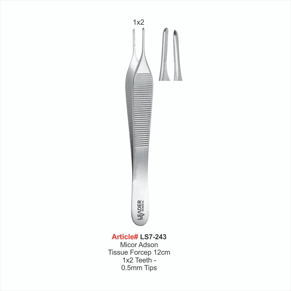Mlcor Adson Tissue Forcep 12cm 1×2 Teeth – 0.5mm Tlps